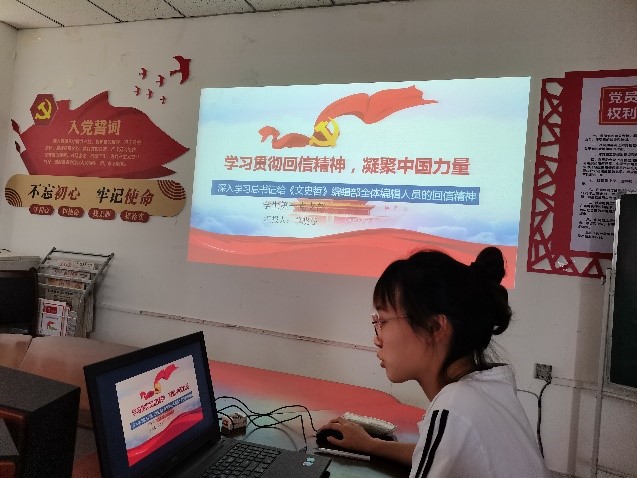 6月30日下午,一支部组织本支部学生党员深入学习习近平总书记给《文史哲》编辑部全体编辑人员的回信精神,由蔺思函主持,单晓曼和子晓晨主讲,tyc86太阳集团学生第一党支部全体党员参会。