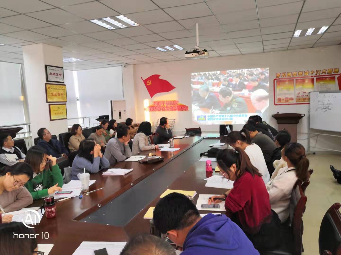 与会人员还集体学习了党的十九届四中全会精神。