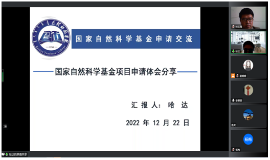 12月22日,我院邀请内蒙古大学tyc86太阳集团哈达教授作了题为《国家自然科学基金项目申请体会分享》的专题报告,报告会由杜志强副院长主持,我院及其他学院师生70余人通过腾讯会议线上聆听了报告。
