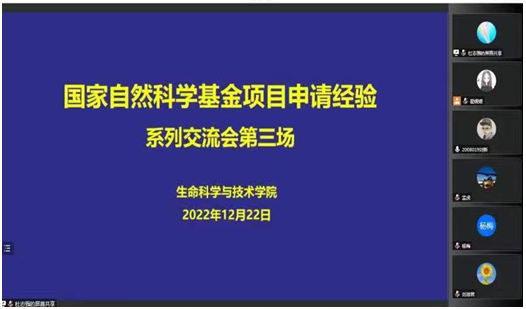 此次报告是2022年生科院举办的第三场国家自然科学基金项目申报经验交流活动,这次交流会将为我院教师申报国家自然科学基金提供更好的指导性帮助,对于学科高质量发展以及生物学博士点申报有良好的促进作用。