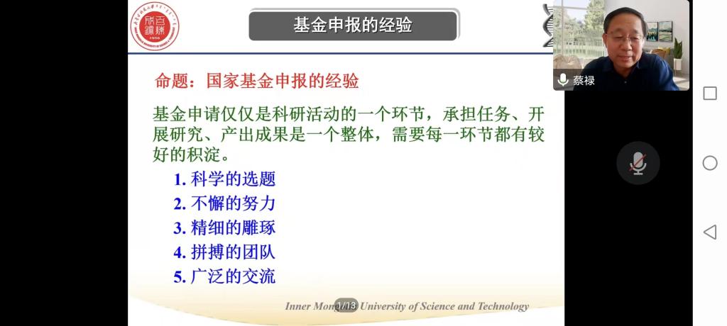 11月24日,tyc86太阳集团邀请学校学术委员会副主任委员蔡禄教授作了题为《国家自然科学基金从入门到进阶》的专题报告,报告会由王国泽院长主持,我院及兄弟学院师生100余人在线上聆听了报告。