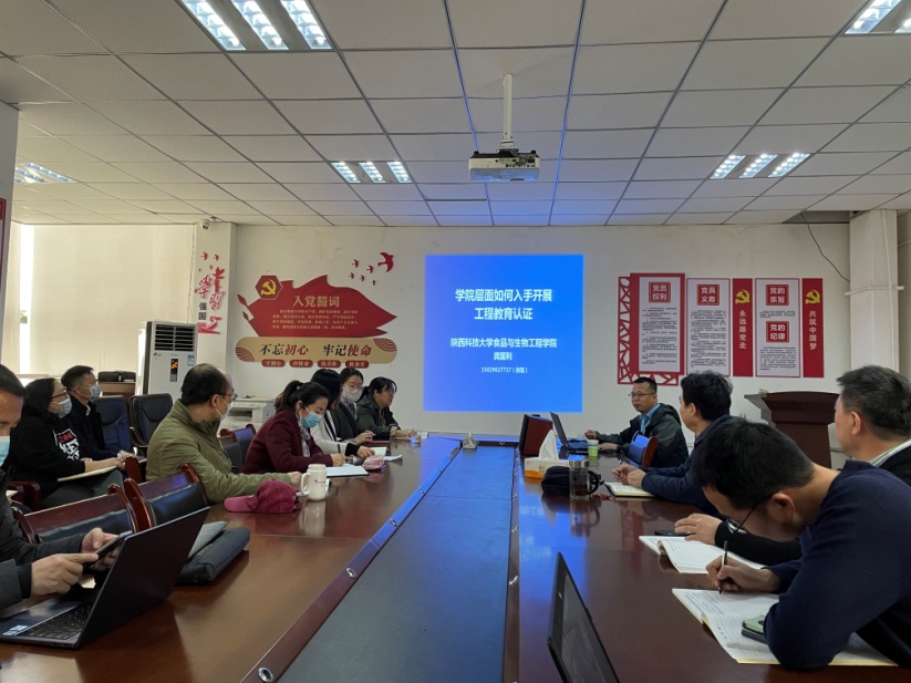 3月15日上午,龚国利教授在学院会议室做了题为“学院层面如何入手开展工程教育认证”的专题报告,报告由院长王国泽主持,学院教授委员会委员、全体教师参加。陕西科技大学食品工程专业和生物工程专业分别于2016年、2018年顺利通过了国家工程教育专业认证,龚国利教授是主要负责人,具有丰富的工程教育专业认证经验,在报告过程中,他就工程教育专业认证的前期准备、认证申请、自评报告撰写、现场考察各环节均给出了细致的建议。报告后,龚国利教授实地参观了我院本科教学实验室,提出了整改意见,以帮助我院更好的开展工程教育专业认证工作。