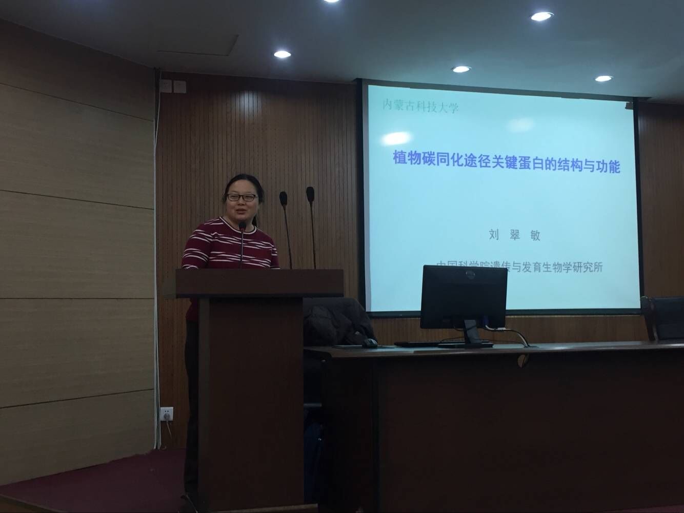 为做好院2018年度国家自然科学基金项目申报工作,12月20日,学院邀请中国科学院遗传与发育生物学研究所刘翠敏研究员来我院进行了“如何撰写国家自然科学基金标书”和“植物碳同化途径关键蛋白的结构与功能”的讲座。会议由院长王国泽教授主持,全院70余名师生聆听了此次讲座。