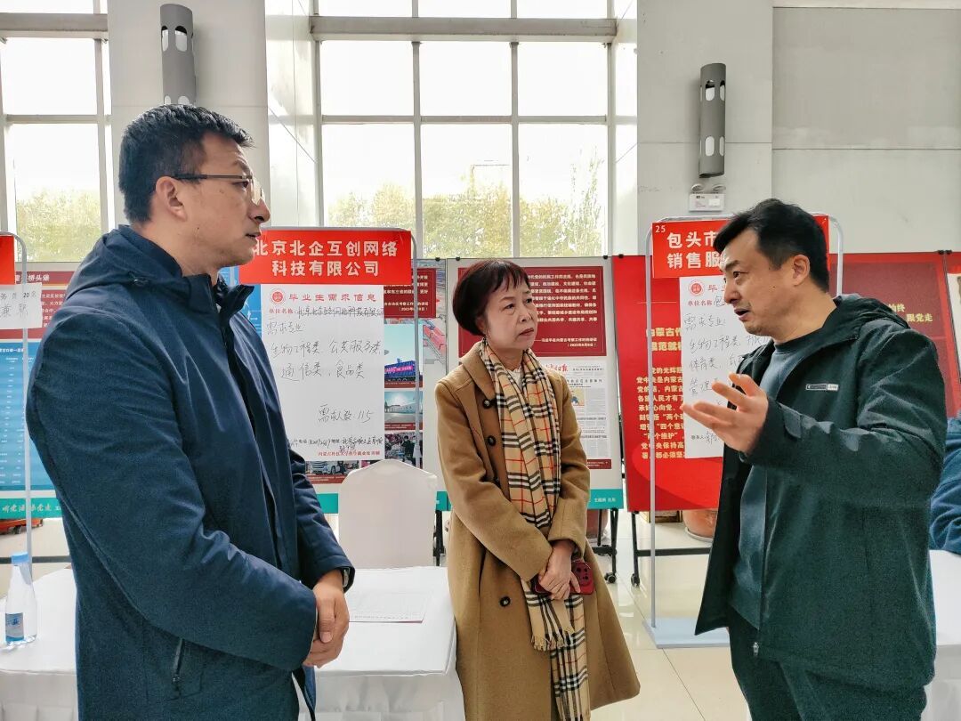 包头市妇联党组成员、副主席李俊现场调研用人单位招聘需求及我校毕业生应聘情况,学院院长杜志强、党委副书记兼副院长王晓东,以及各系主任、班主任、辅导员、研究生导师、毕业论文指导教师等在现场为动员同学们积极投递简历,对同学们进行现场指导,并积极与各用人单位沟通交流。