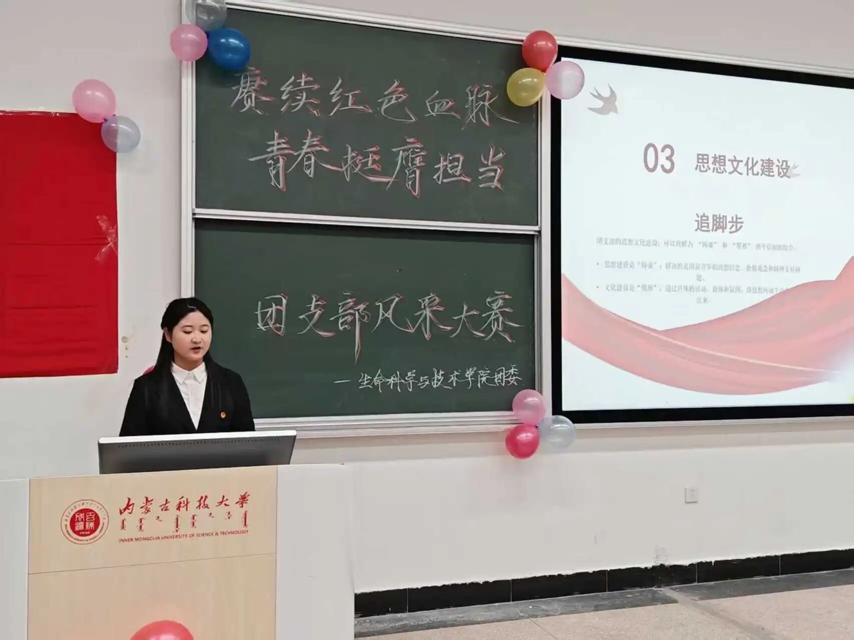 青春逢盛世,奋斗正当时。11月8日,tyc86太阳集团“赓续红色血脉,青春挺膺担当”团支部风采大赛成功举办,团委负责人贾镇宁、学工办负责人乌日根及各学生组织主席担任本次活动评委。本次活动不仅丰富了校园文化生活,更以艺术为媒介、以创意为桥梁,展现了青年学子对红色精神的创造性传承与创新性表达。各团支部紧扣主题、精心编排,以歌抒怀、以舞励志、以诵明志,生动诠释了新时代青年的使命担当,彰显出踔厉奋发、昂扬向上的精神风貌。