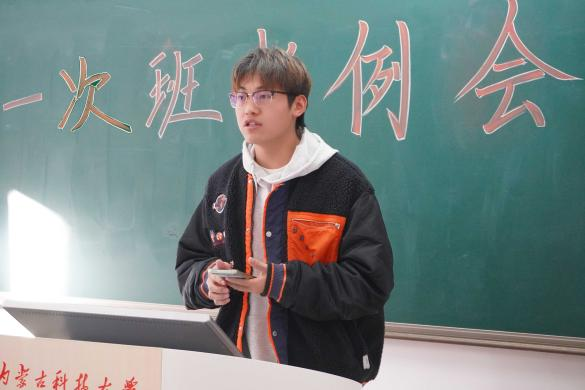 随后,主持人武甜田介绍了本次“复盘班级工作,共解当前问题,以凝聚班级合力”的会议主题,并对与会师生表示欢迎。乌日根老师结合学院党委副书记对学生工作的安排要求,深刻阐述了班长例会的目的与意义,明确了工作要求,为会议划定了清晰的方向,确定了“务实、协作、共进”的基调。同时,乌老师也从学生教育管理的角度出发向各班班长强调了防电信诈骗、用电安全、消防安全的重要性,要求各班班长向班级同学准确传达。随后,围绕“复盘班级工作,共解当前问题,以凝聚班级合力”进行了主题发言。