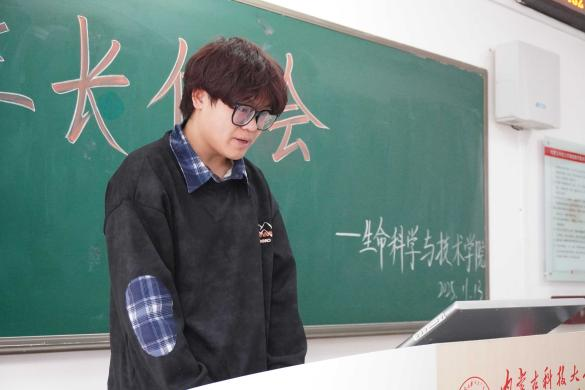 在紧随其后的班长工作汇报环节中,生工2025-1班张宇航、生技2024-2班于威、生工2023-3班钱康瑞、生工2022-1班张志杰四位班长作为各年级班长代表,依次上台发言。他们围绕学校学院的学生工作落实、班委协作、学风建设、班级同学学习生活状况、宿舍安全卫生等方面,对本班近期工作进行了全面总结,并坦诚地提出了当前工作中遇到的难点与挑战。