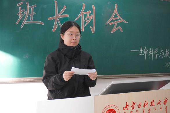 学院团委负责人贾镇宁老师、学工办负责人乌日根老师、2025级包联辅导员赵昕老师、2024级包联辅导员陈明真老师、各班级班长、学生组织主席团及班级管理委员会成员共同参会。本次例会由班级管理委员会奖助与测评部副部长武甜田同学主持。