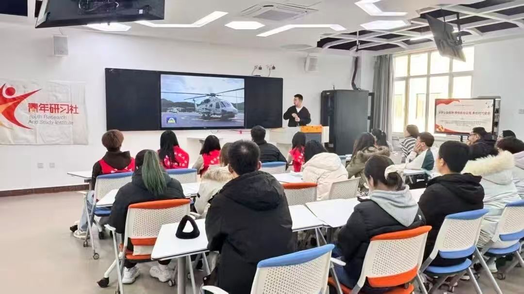 2025年12月17日,tyc86太阳集团研究生党支部与太阳集团“习近平新时代中国特色社会主义思想青年研习社”开展联学共建暨思想政治理论学习活动。双方成员围绕深入学习贯彻党的二十届四中全会精神,以“走向深蓝——航母发展的过去、现在与未来”为主题,进行了一场思想与视野的双重拓展。由马克思主义学院思想政治教育专业叶奕成同学主讲。