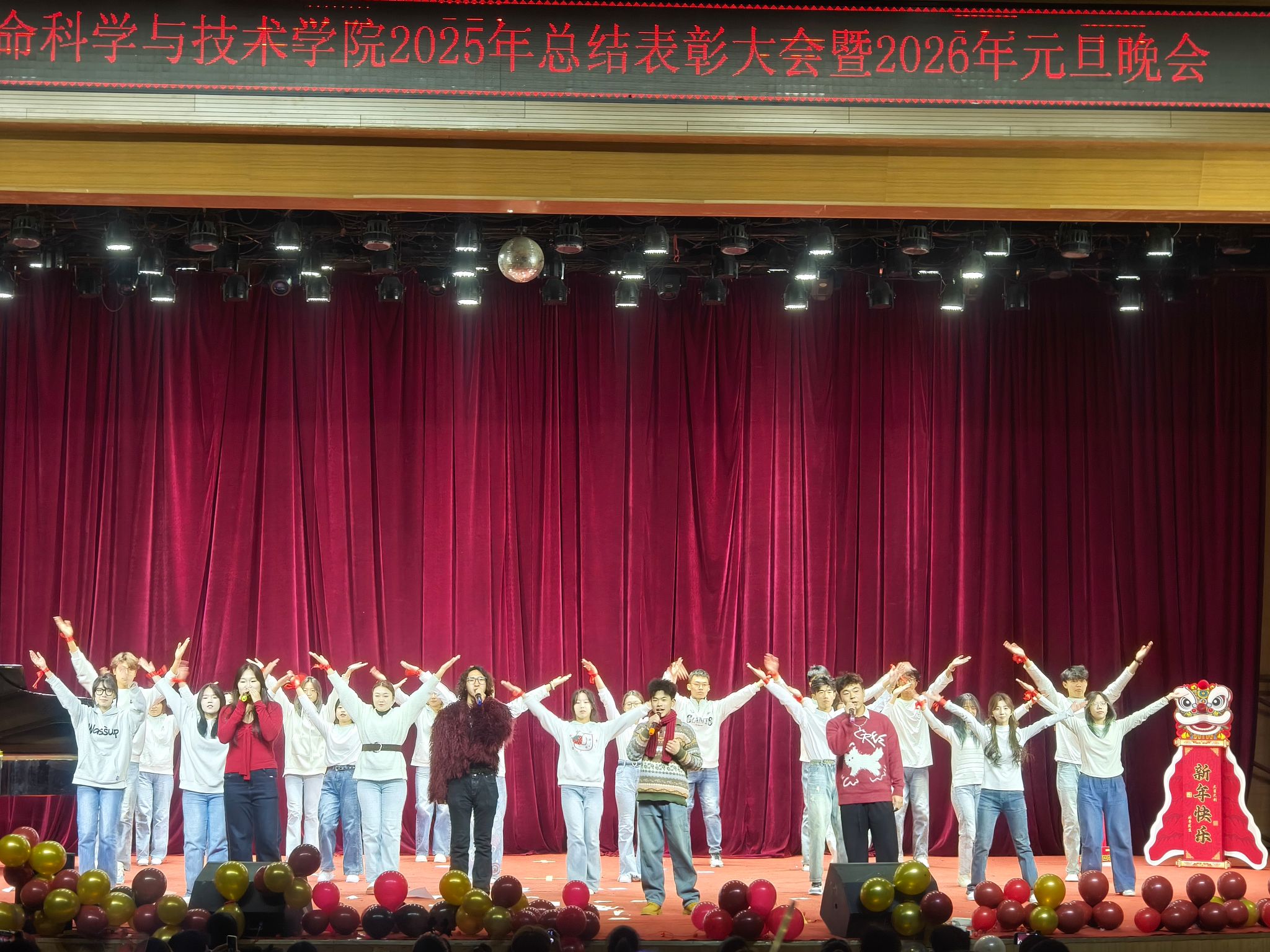 表彰环节结束后,一场洋溢着青春活力与时代气息的元旦晚会精彩上演。晚会节目均由学院师生及社团精心编排、自主创作,形式多样,内涵丰富,生动诠释了生科学子的多才多艺与无限创意。