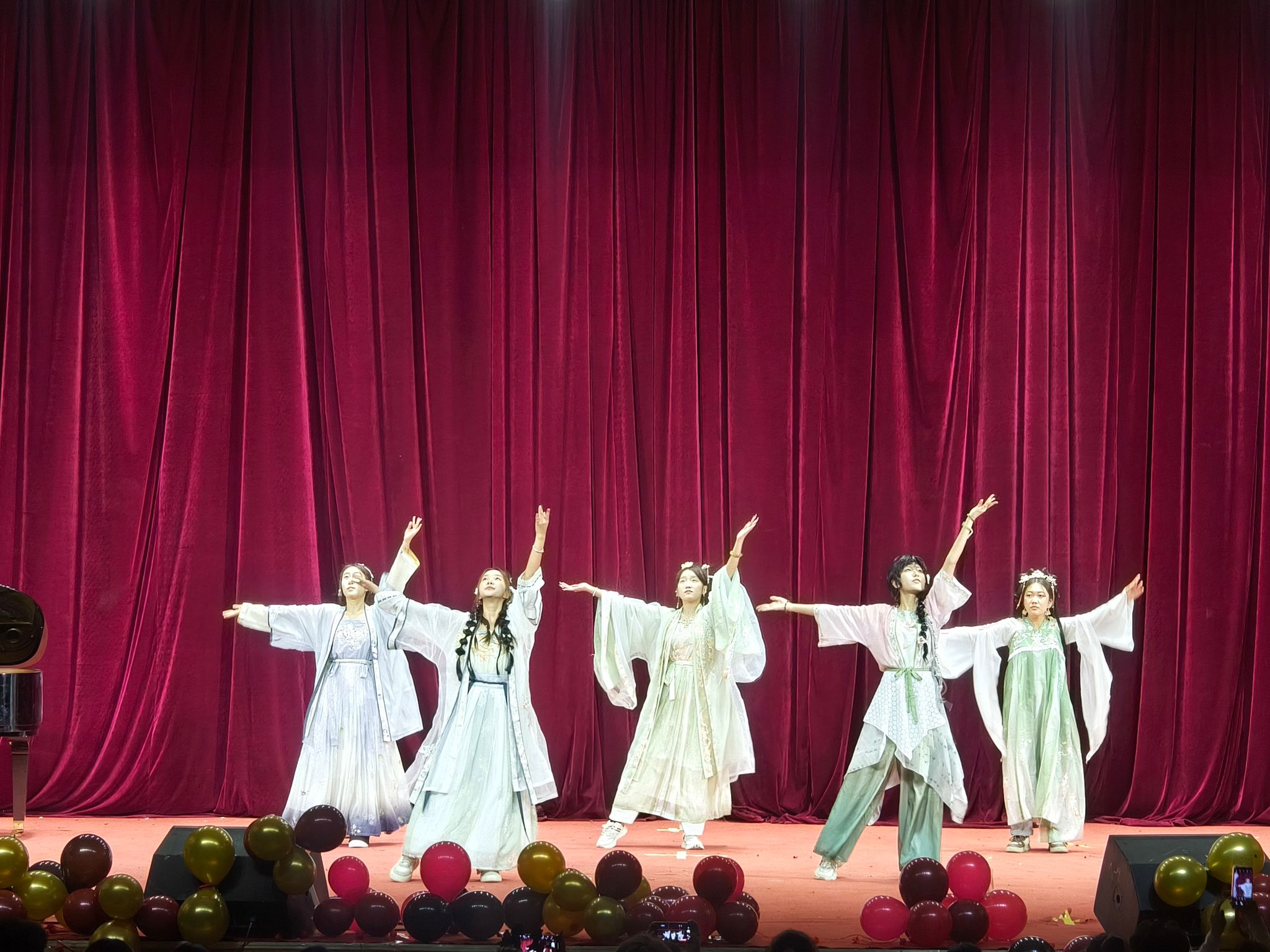 晚会在腾飞艺术团鹿鸣乐队充满活力的歌曲《你要跳舞吗》中热烈开场。随后,深情演唱的《小酒窝》、《My love》、《有点甜》、《富士山下》展现了学子们的青春情怀;汉服社团演绎的舞蹈《折枝花满衣》,衣袂飘飘,古韵悠然,彰显了文化自信;跳绳社团的《随绳舞动》活力四射,腾飞艺术团的器乐演奏《无名的人》深情动人,赢得了现场阵阵喝彩。由学生组织出演的小品《当考试还剩最后15分钟》,贴近校园生活,诙谐中蕴含思考,引发了广泛共鸣。