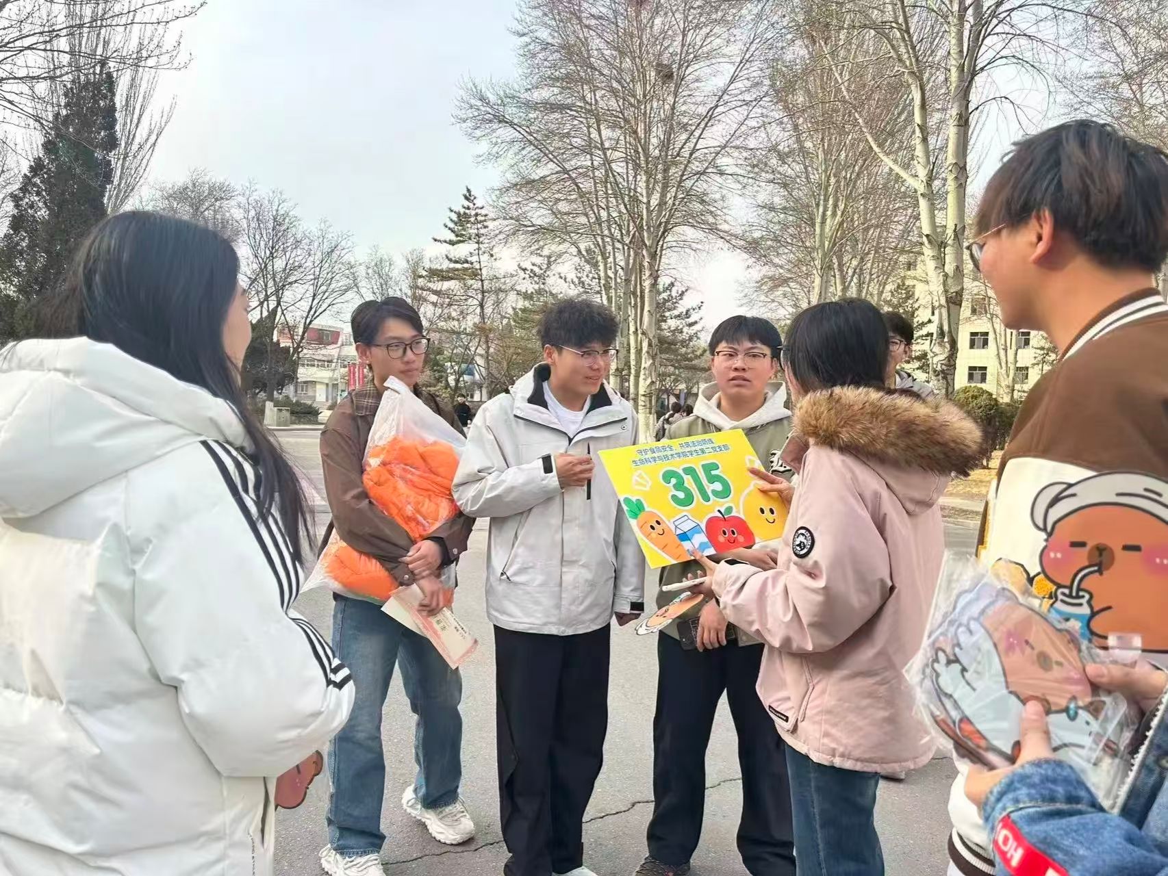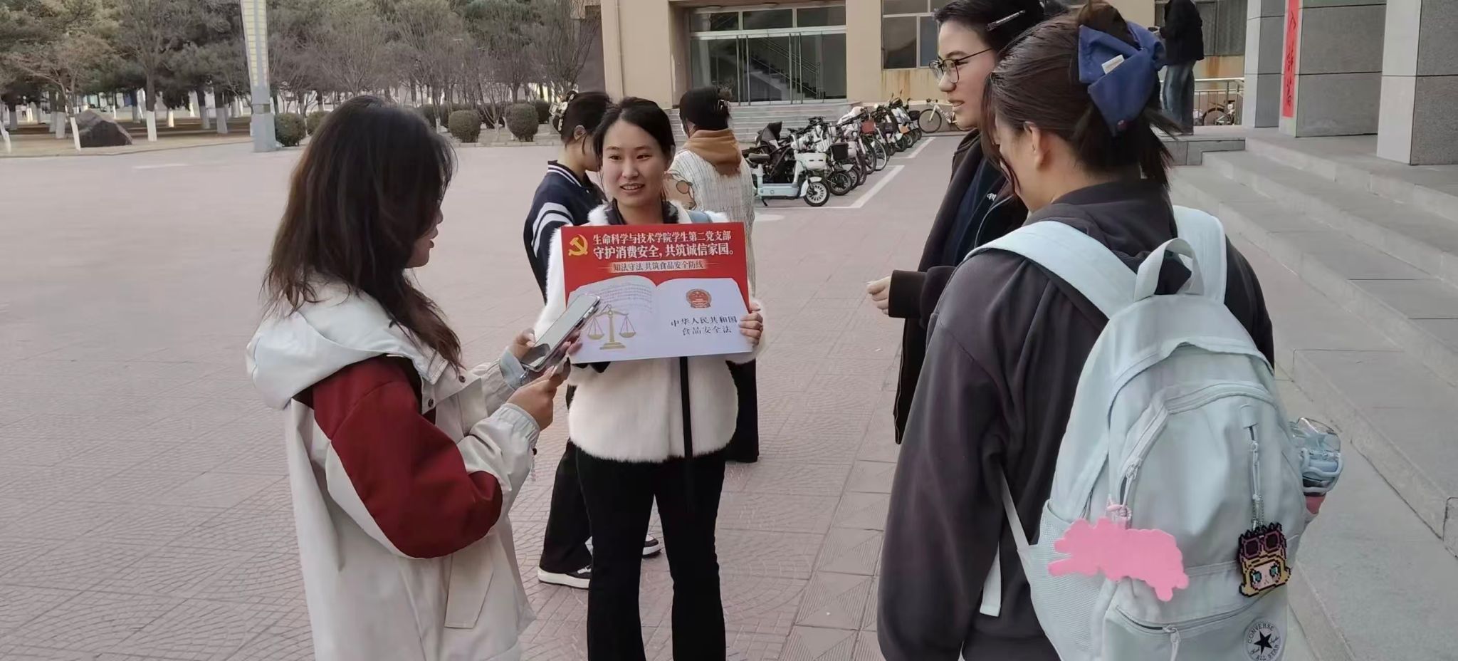 在实践宣传环节,支部党员分工协作,深入校园宿舍区、教学楼、图书馆等人流密集区域,通过面对面采访与趣味问答互动等形式开展宣传。围绕“隔夜菜能吃吗?”“无糖食品真的不含糖吗?”等贴近生活的问题,党员们向同学们普及食品安全基本常识、食品添加剂相关知识及维权途径,并现场答疑解惑,切实提升同学们的食品安全意识与自我保护能力。活动现场气氛热烈,同学们积极参与,纷纷表示收获颇丰。