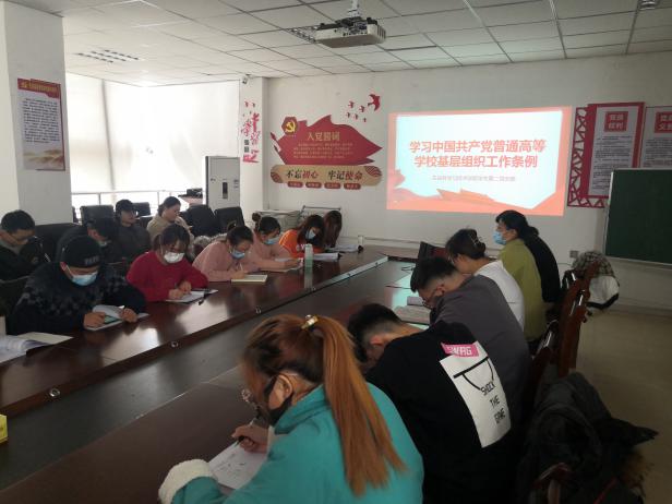 2021年11月9日,tyc86太阳集团学生第二党支部组织全体党员在腾飞楼D410对《中国共产党章程》《中国共产党基层组织选举工作条例》《中国共产党普通高等学校基层组织工作条例》等规定,进行了深入学习。