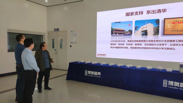 最后,赵院长一行来到内蒙古博奥医学检验所,检验所负责人王启刚对老师们的到访表示热烈欢迎,在介绍检验所的检测资质和发展情况的同时,也带领老师们参观了检验所内的仪器设备。接着,作为自治区唯一的生物信息学专业,系主任邢永强老师主要就我院的生物信息学专业建设情况、专业培养方案专业特色、学生科创成果等情况进行了详细介绍。王总表示公司目前处于发展阶段,正在积极拓展业务,希望内科大生科院的优秀毕业生能够加入公司,共同成长进步。赵院长希望学院能够与企业加强交流合作,实现优势互补,开展全方位、长期性、深层次的合作交流,并可以提供更多优质岗位招聘学校的优秀毕业生。