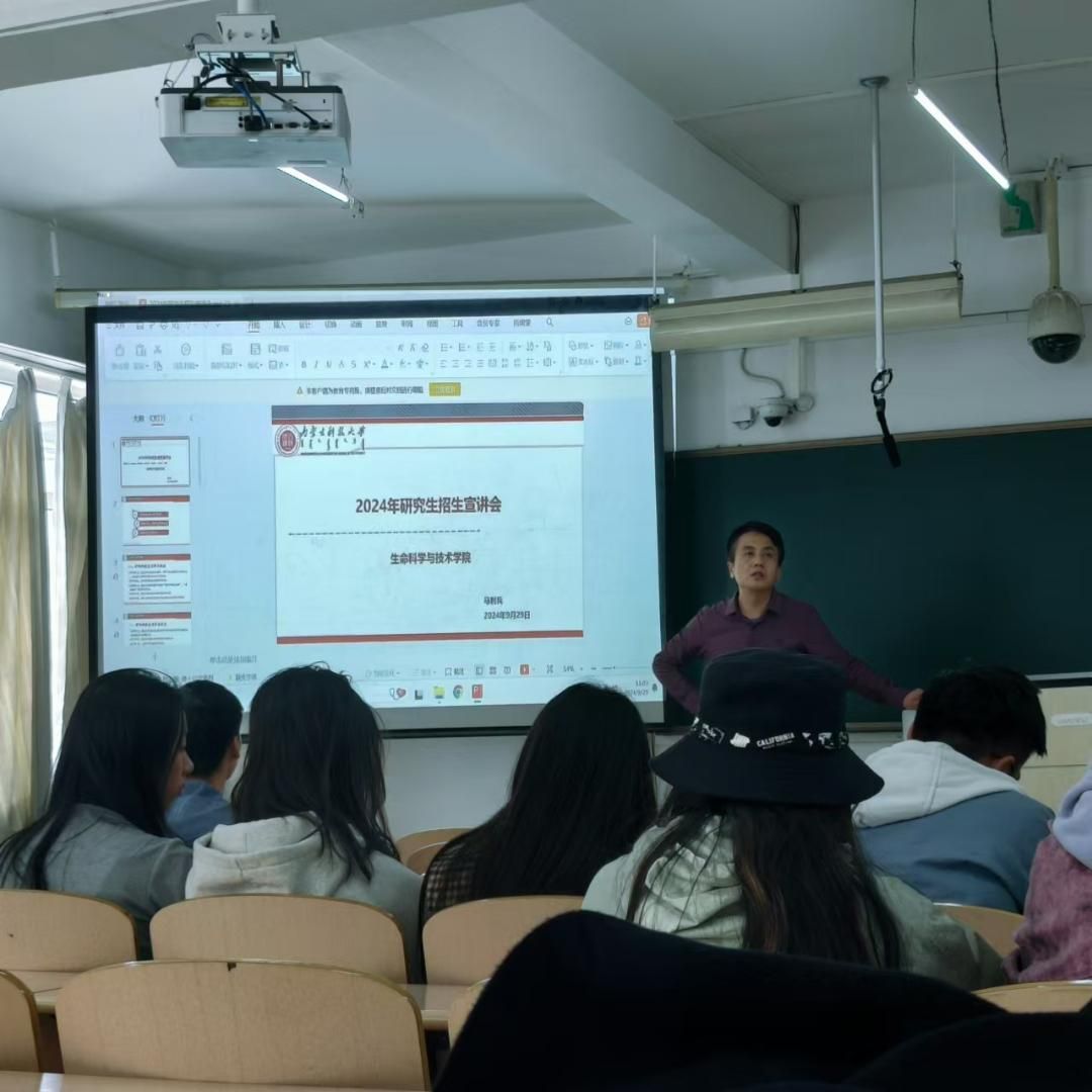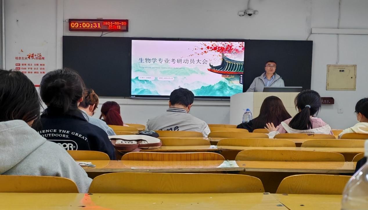 马利兵教授面向生物技术系学生进行专题讲座。马利兵教授首先动员同学们的考研积极性,并以我院研究生报考为例,指导同学们选择报考目标院校,从我院历史沿革与现状、学科方向及特色、研究生导师队伍、研究生招生及培养等方面,结合各专业进行针对性分析,给同学们提供了细致全面的报考及复习指导。