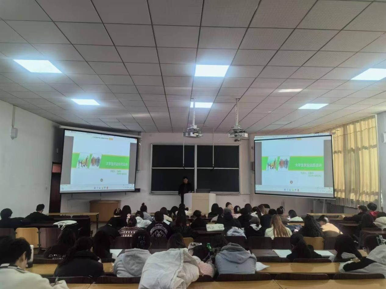 王晓东老师和乌日根老师分别从整体上介绍了2025届毕业生就业形势的严峻,通过对学院2023届、2024届毕业生毕业去向落实情况的分析,用人单位招聘情况等,围绕“学院毕业生就业工作基本流程”、“就业协议书签约及注意事项”、“求职信息检索与机会把握”、“就业帮扶及注意事项”待方面向同学们开展动员,叮嘱同学们要抓住“秋招”的就业黄金期,并详细介绍了10月24日学校2025届毕业生大型双选会暨“宏志助航计划”专场招聘会事宜,动员大家积极参加双选会、积极投递简历。