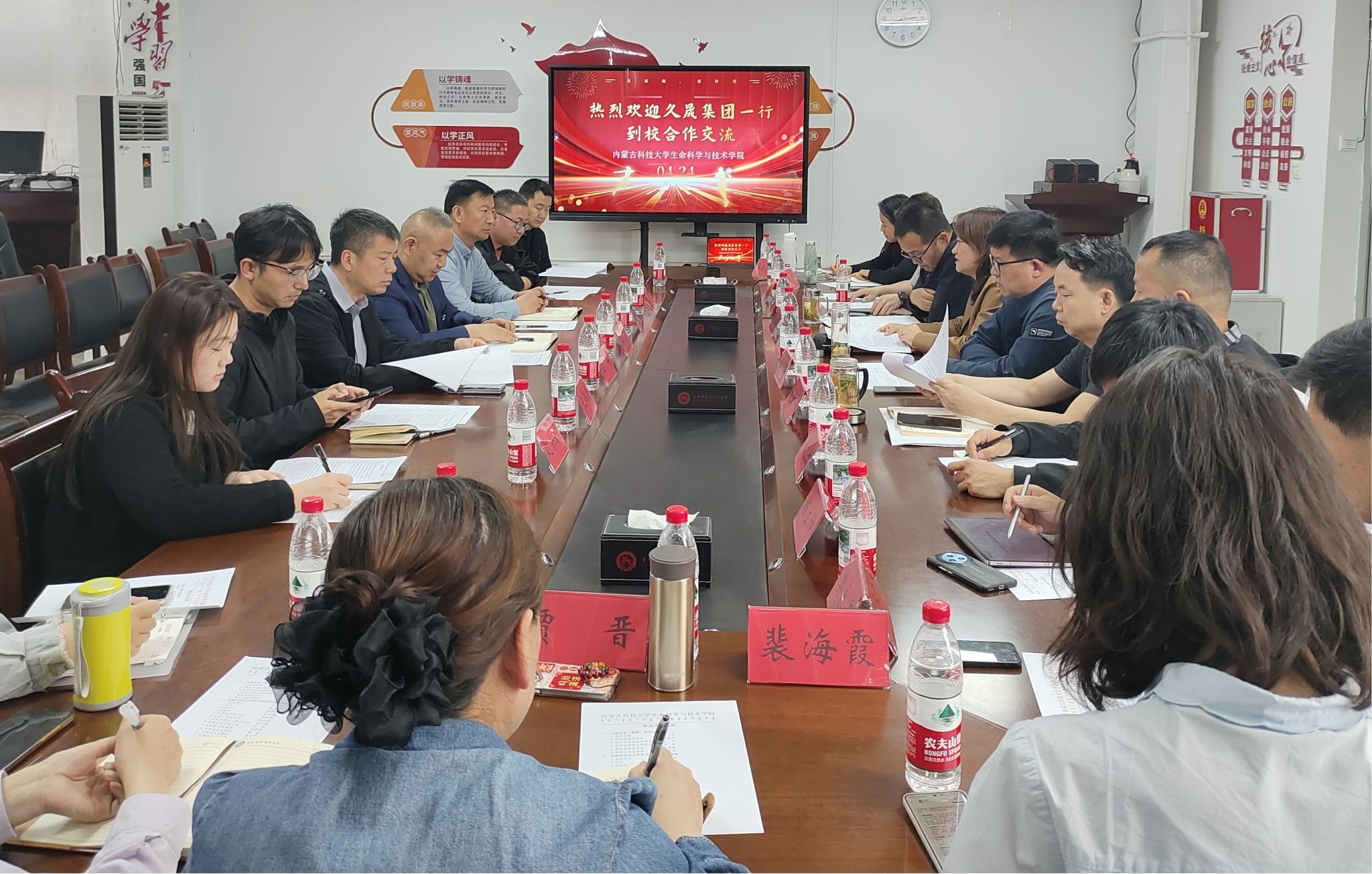 2025年4月24日,内蒙古久晟实业(集团)有限公司副总经理郭飞一行六人应邀到我院开展产学研合作交流座谈。学院领导班子、系部主任、科研团队带头人及青年教师代表参会,双方围绕技术攻关、人才共育、实践基地建设等内容展开深度交流。