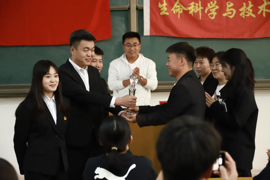 大会第四项:举行团学组织薪火相传仪式。2022届主席团向2023届主席团正式传递了团学组织的“生生不息”杯,这不仅是将学院学生团学工作的“接力棒”进行了交接传递、更是将学院“生命不息,奋斗不止”、团学组织“薪火相传,生生不息”的精神,传递给2023届团学组织。