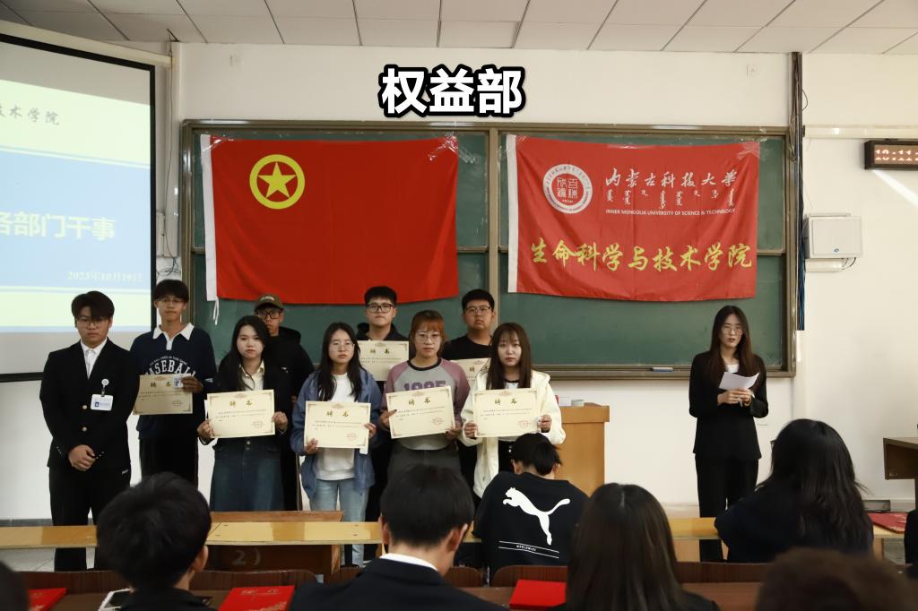 大会第六项:聘任2023届团学组织各部门干事。以部门为单位,部长携本部门成员依次上台,由部长为本部门干事颁发聘书和工作证,介绍本部门主要职责和部门成员的基本情况,并对任期内所承担工作做出表态与承诺。