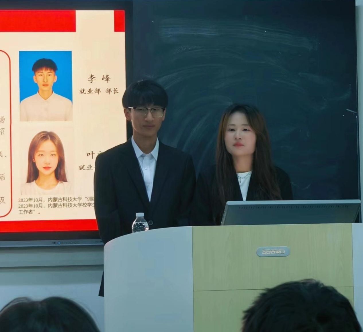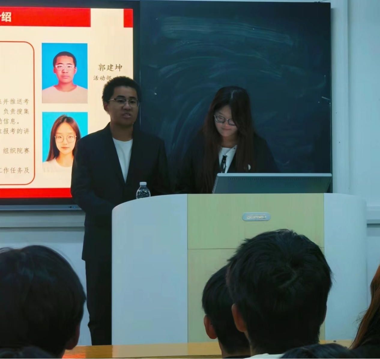 活动部部长郭建坤、副部长贾婧冉总结本部门职责为“向外收集考研就业信息+组织相关活动”,即收集推送考研、就业、考公考编、基层岗位报考等信息,组织开展考研就业相关讲座、经验分享会等工作。