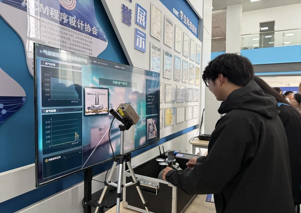 演练设置六大核心体验区:数智全息舱、气体钢瓶虚拟仿真实训、实验室隐患排查、火场逃生、废液撒漏处置及MR安全意识体验区,覆盖了实验室常见安全风险与应急场景。师生通过设备“身临其境”进入虚拟实验室,在模拟事故中反复练习应急处置流程。参与师生表示,虚拟场景让隐患和事故“可视化”,这种互动式学习更易理解记忆。