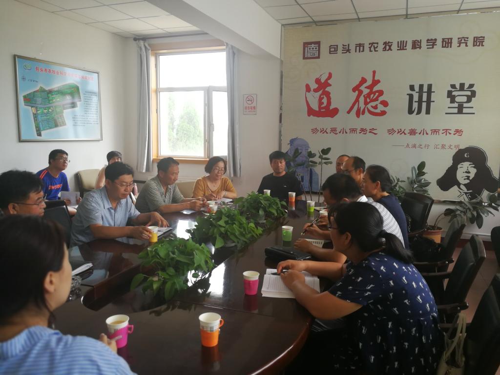 为加强我院学科方向的凝练和更好与地方经济结合,2018年7月13日,由我院植物学方向团队和应用微生物学团队一行8位教师来到包头市农科院座谈交流参观。市农科院院长高振江、副院长张仙保、总工程师尚春明等专家和各部门科技人员参加了座谈会。