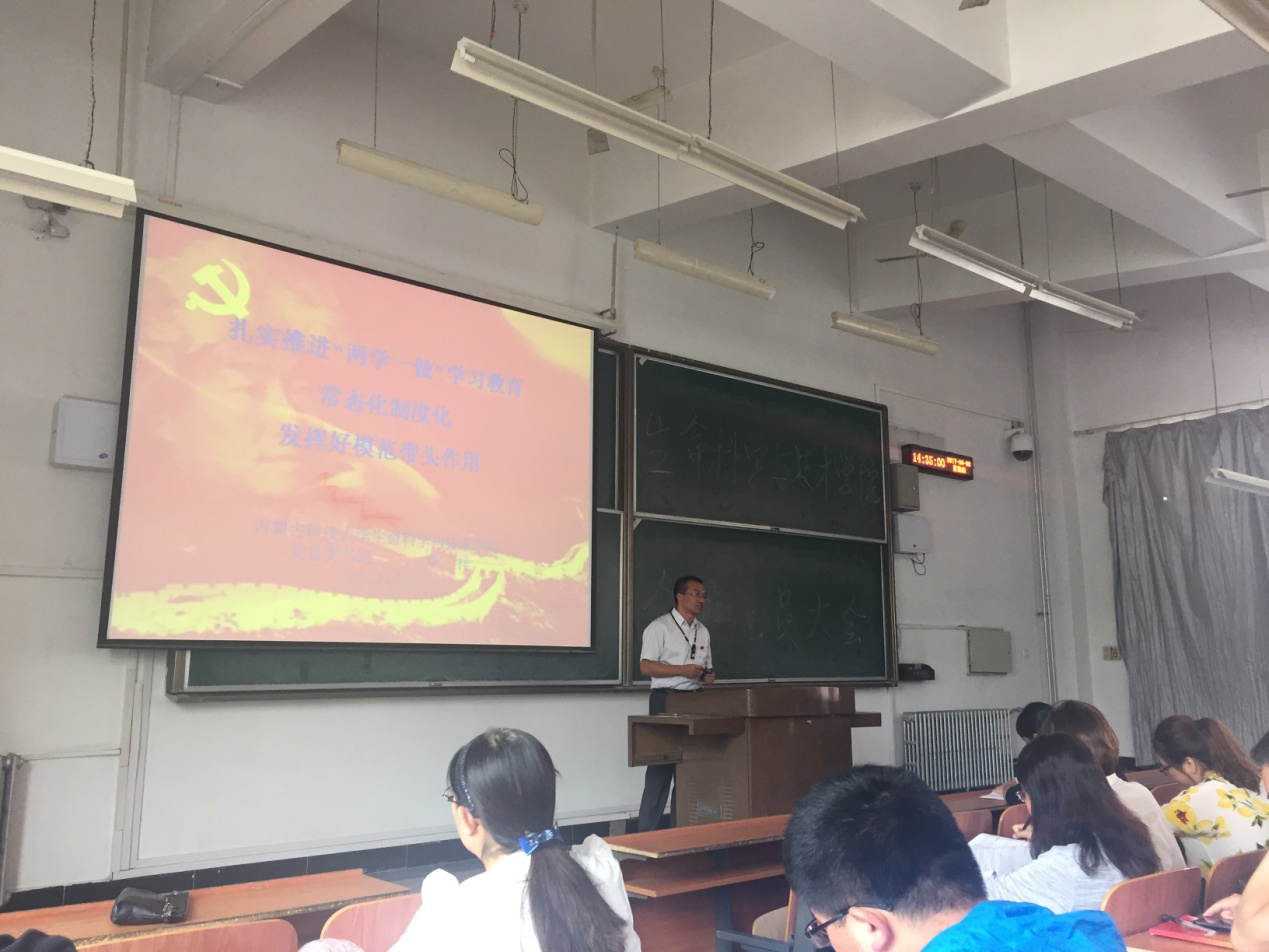 6月8日星期五下午2点半,tyc86太阳集团党总支书记季祥为生科院全体党员讲了一堂题为:“扎实推进“两学一做”学习教育常态化制度化,发挥好模范带头作用”的党课。
