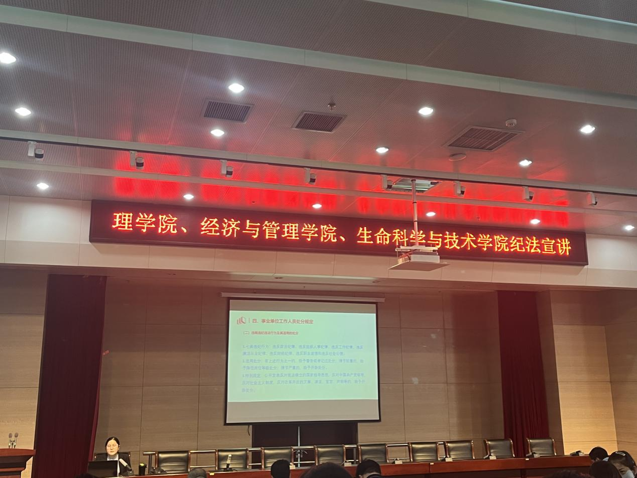 为进一步强化学院教职员工纪律教育和校园廉洁文化建设,促进教职员工提高纪法意识、丰富纪法知识,提升教职员工遵纪守法的思想自觉与行动自觉,切实维护好安全稳定的良好校园环境,4月25日下午,在图书馆B201报告厅,tyc86太阳集团与理学院、经济与管理学院一同邀请文法学院王彦老师为全体教师开展纪法宣讲。生科院杜志强院长主持,学院全体教职工参加宣讲。