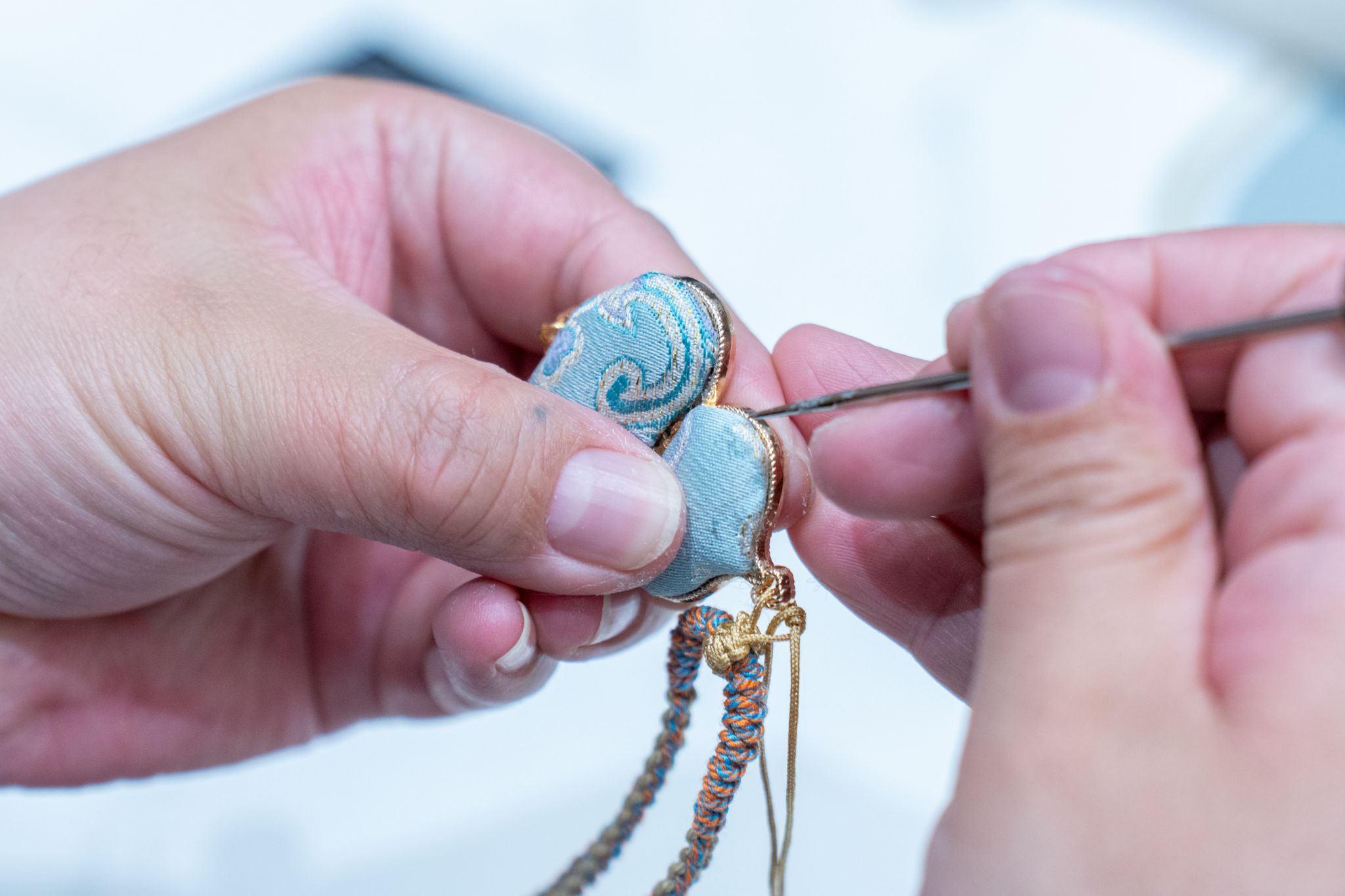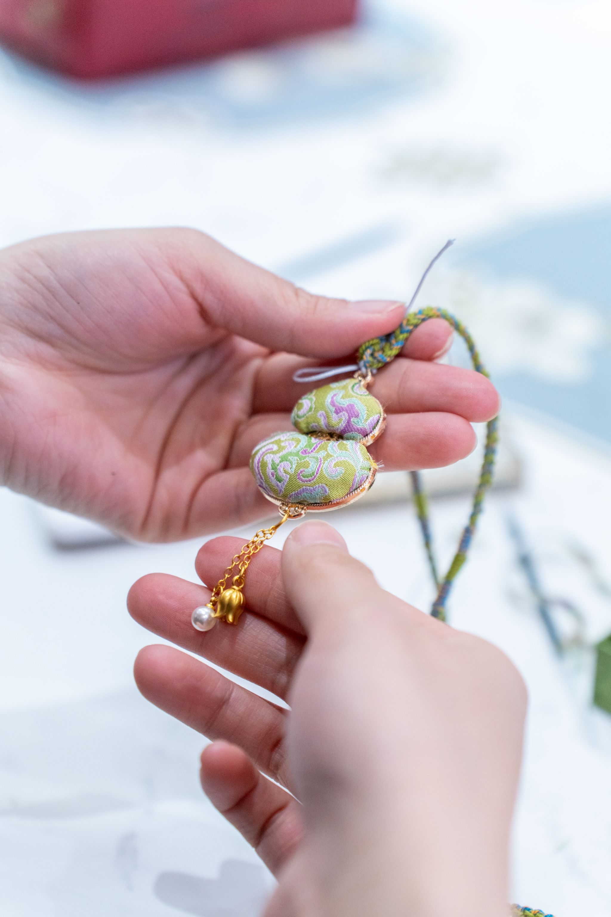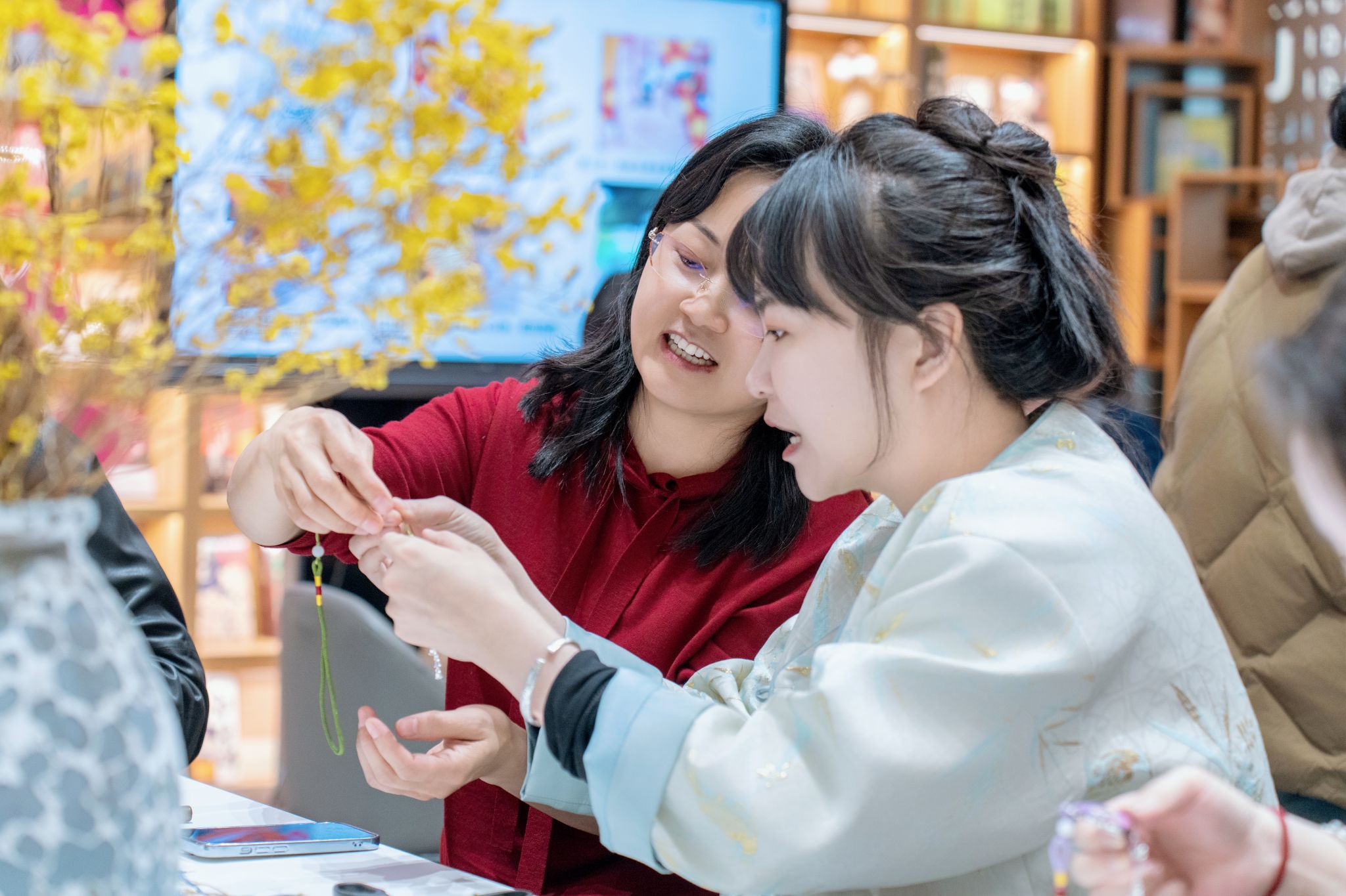 活动中,手工老师先是为大家讲解宋锦饰品的历史文化背景及制作工艺要点,并随后让大家亲自动手制作一份宋锦饰品。制作过程中,大家欢声笑语、气氛热烈。