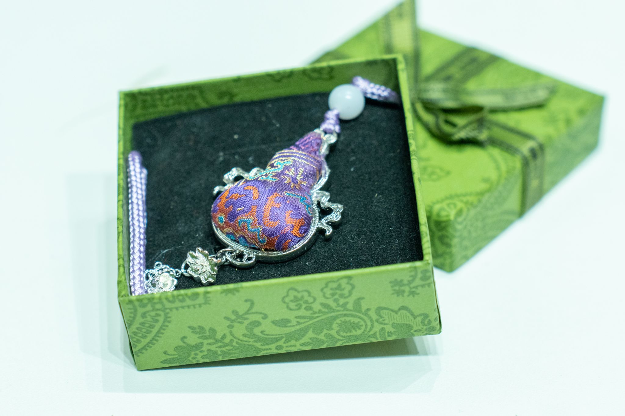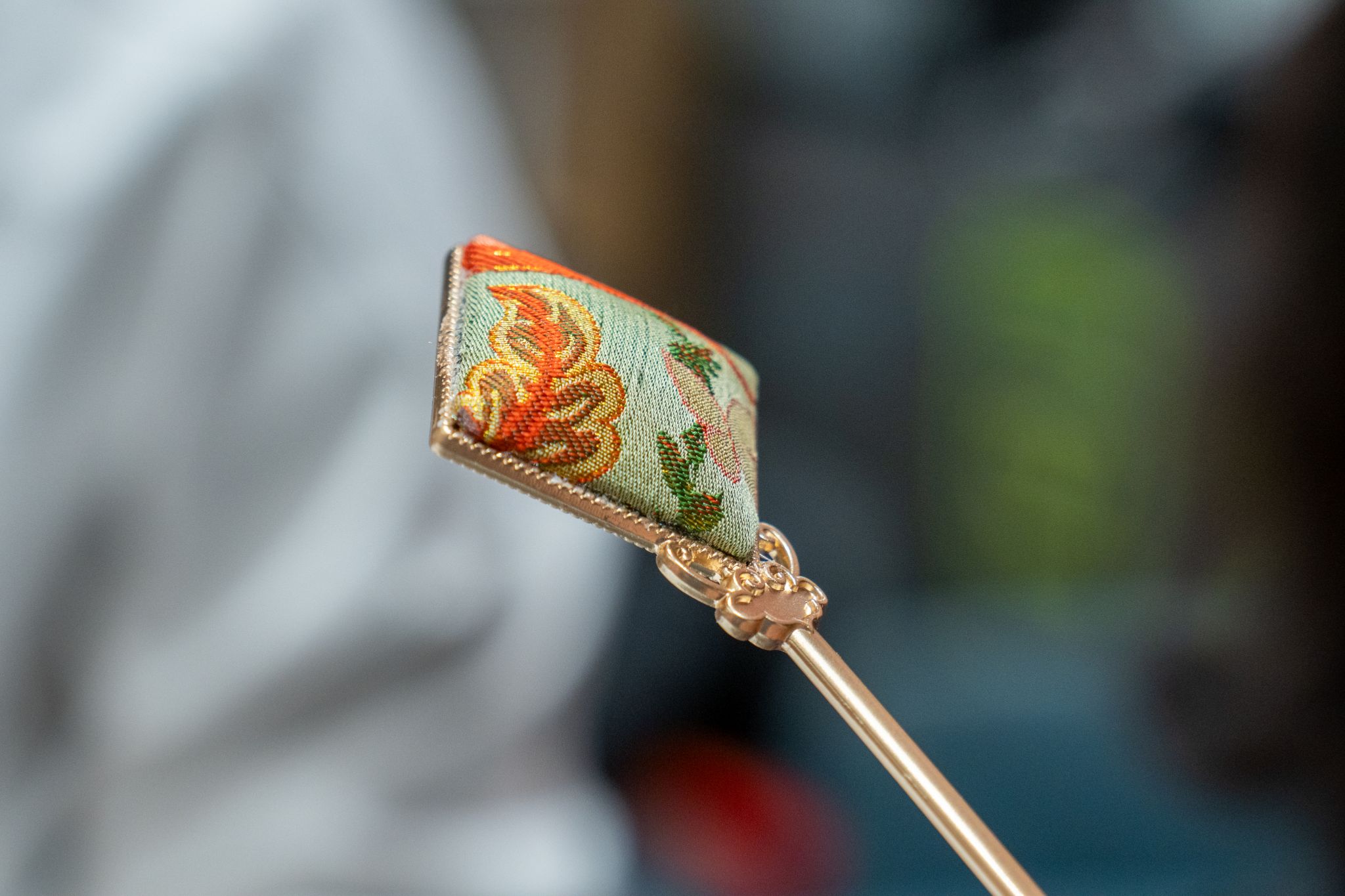 宋锦,以其独特的织造工艺和丰富的图案设计,成为了中华文化中的瑰宝。其独特的织造工艺和丰富的图案设计,使得每一件宋锦饰品都充满了独特的魅力,是古风与时尚的完美碰撞。