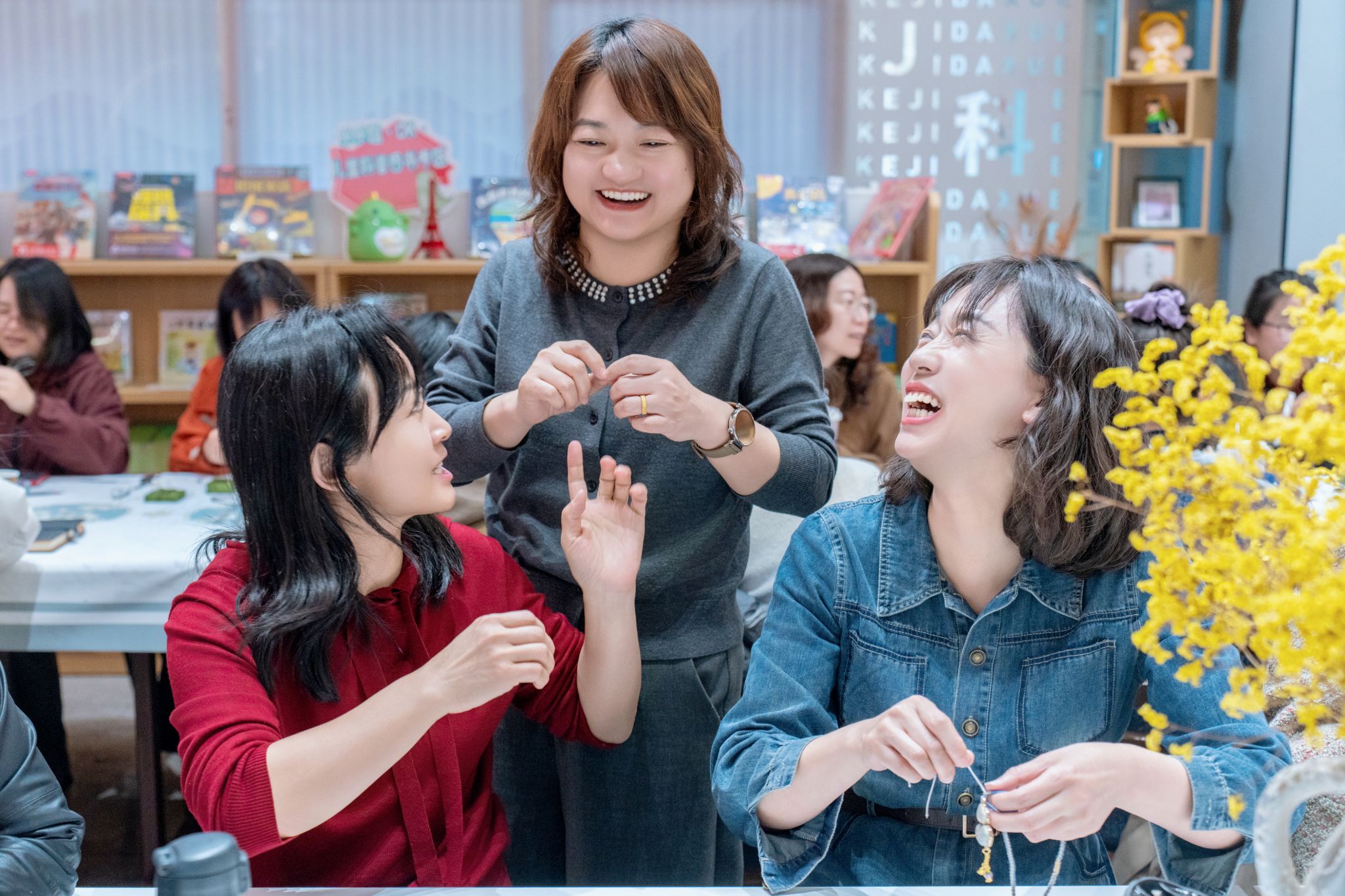 近日,为庆祝115个“三八国际妇女节”的到来,表达对学院女教工的尊重与关爱,tyc86太阳集团工会在图书馆“悦书吧”组织学院全体女教工开展手工制作非遗宋锦饰品活动。