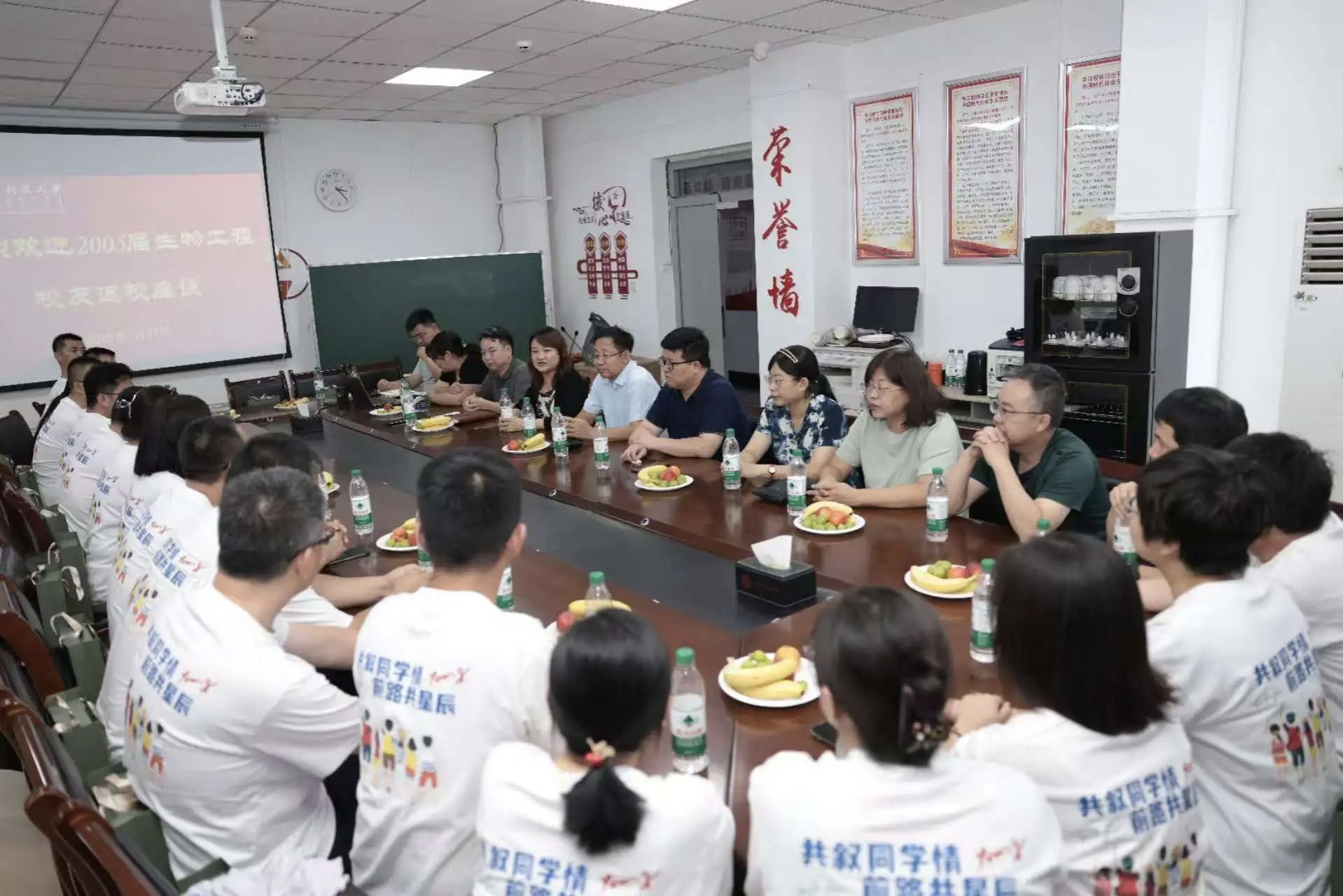 7月27日,学院迎来了2005届生物工程专业校友,作为学院首届本科毕业生,他们怀揣着对母校的眷恋及同窗的友情返校,共庆毕业二十周年。当天下午,在腾飞楼D座410会议召开座谈会,tyc86太阳集团党委书记李德超、院长杜志强、副院长赵宏宇,教务处副处长李雅丽,以及蔡禄、崔向军、石春芳、姜志艳等学院教师代表,与2005届生物工程校友齐聚一堂,共忆求学岁月,畅叙师生情谊。