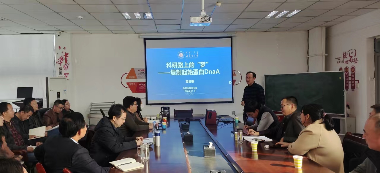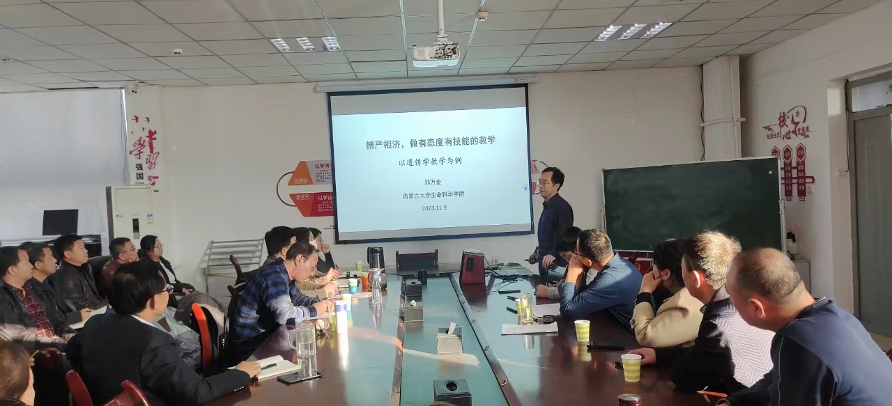 结合学校期中教学检查以及科研项目申报的工作要求,2023年11月9日,内蒙古大学生命科学学院莫日根教授、邢万金教授受邀来我院进行学术交流。莫日根教授做了题目为“科研路上的梦”的科研学术报告,重点介绍了复制起始蛋白DnaA分子的研究现状。邢万金教授做了题目为“精严相济,做有态度有技能的教学——以《遗传学》教学为例”的教学学术报告,从多层次、多角度讲述了教学设计的方法与技巧。报告期间,两位教授结合自己几十年以来的教学与科研经历,用自己的所思、所感、所获给我院教师进行了一次全面而又深入的学术讲座,并且就学术问题展开了热烈讨论,报告会又一次激发起了大家对教学、科研工作的敬畏之心。