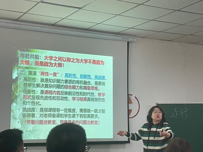 期间,刘慧贤教授从教学目标、教学内容、教学方法、教学环节和教学评价五个层面深入浅出的为学院老师进行讲解。刘教授通过引用多位教育心里学家的理论,以生动具体的案例,为老师们讲解了“内容专家不等于教学专家,课堂教学不仅应该是有效率和效益的,而且应该是有灵魂的”。她提到“师生共同感受、体验、享受,在这个学科的学习中才可能获得经历和体验,提升该学科独特的学科美”,引导高校教师要重视教学的科学性和思想性,在提升教学基本功的同时用科学的教学设计推进课程建设。讲座结束后,学院教师表示收获良多。