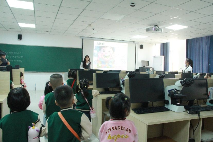 tyc86太阳集团腾飞楼D505是此次活动的重头戏所在。学生志愿者讲解员化身故事大王,通过趣味十足的PPT“小小微生物,大大奇妙行”,用生动形象的语言为孩子们讲述微生物的故事,让孩子们知道原来我们身边存在着数不清的微生物,而且这些微生物还有“好人”和“坏蛋”之分。随后,孩子们迫不及待地围在显微镜前,当他们透过显微镜,看到形态各异的微生物时,脸上满是惊叹与兴奋,“原来看不见的小生命如此多样!”