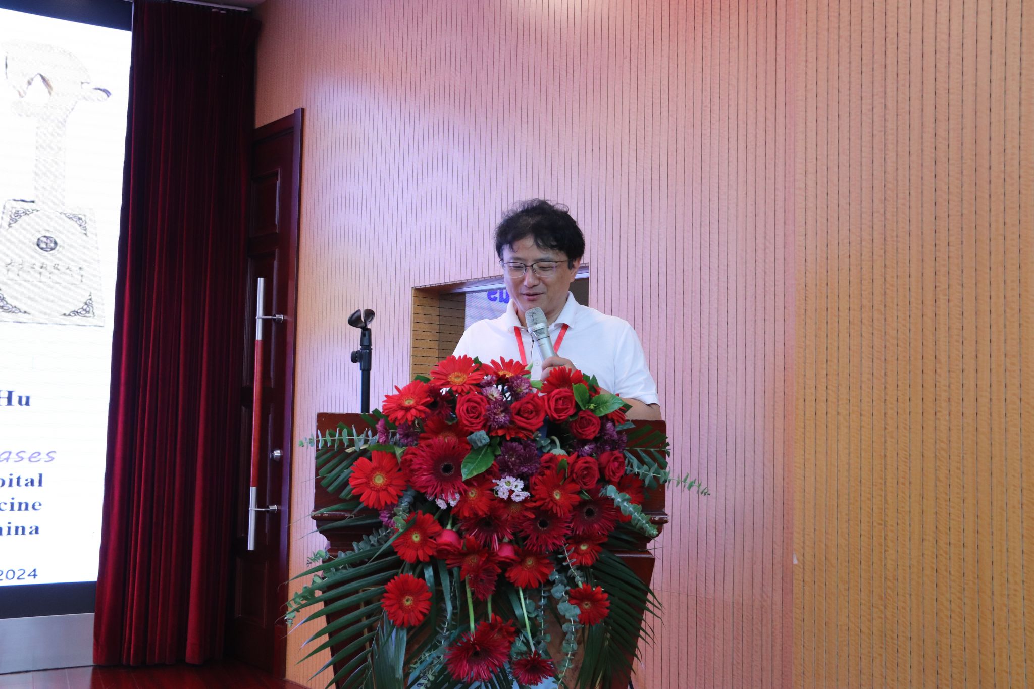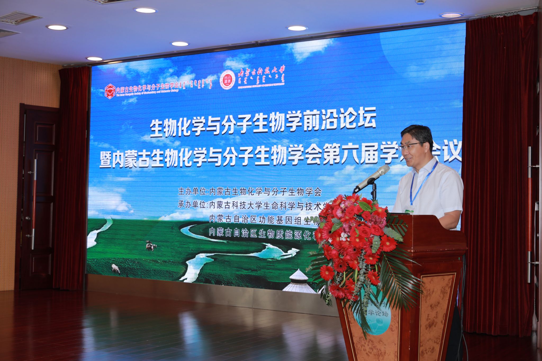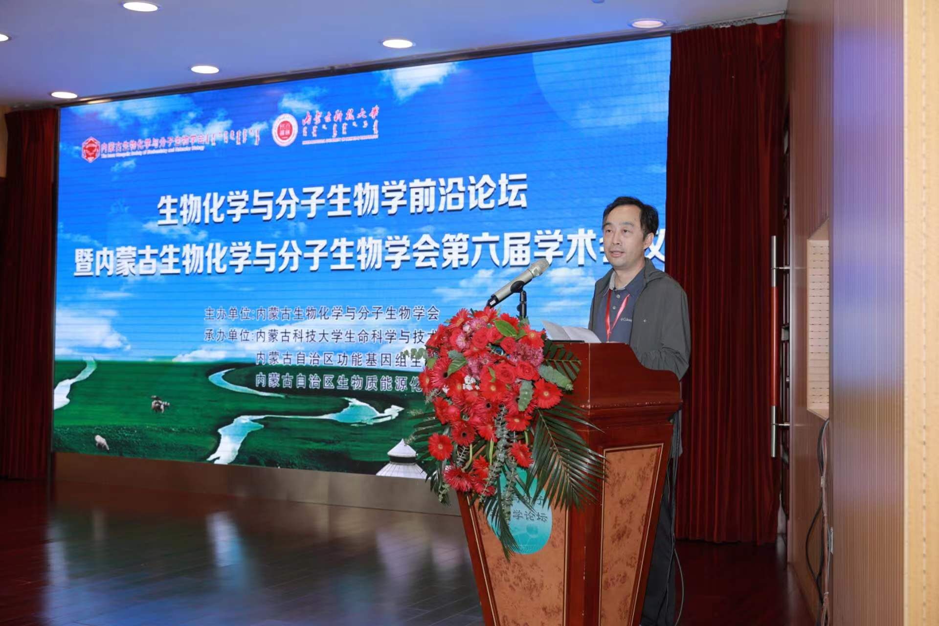 内蒙古生物化学与分子生物学会秘书长邢万金教授致辞。邢万金对齐聚“鹿城”包头的专家学者及会议承办方表示感谢,并指出希望通过此次交流学习的机会,能够展示生物化学与分子生物学研究最新成果,为内蒙古生命科学领域的科技进步与创新,做出更大贡献。