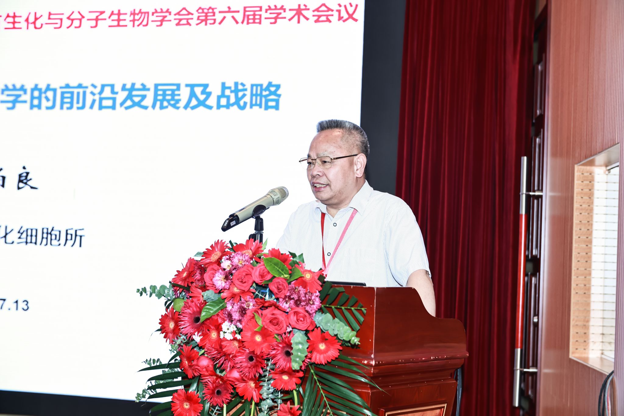 第一单元由细胞增殖及调控生物学教育部重点实验室主任、国家杰出青年科学基金获得者、北京师范大学生命科学学院苗龙教授,国家杰出青年基金获得者、长江学者特聘教授、中国农业大学生物学院院长郭岩教授主持。中科院生化细胞所研究员,曾任中科院上海生化所所长、中科院生化细胞所所长、国家科技部重点研发计划首席科学家李伯良,国家杰出青年科学基金获得者、首都师范大学党委常委、副校长马力耕教授,国家杰出青年科学基金获得者、南京医科大学孙启明教授,教育部 “长江学者奖励计划” 特聘教授、湖北工业大学彭良才教授,南京医科大学姚兵副教授,中国药科大学高层次人才、生命科学与技术梁宏伟副教授,分别作《中国生化分子学术前沿与发展战略》、《植物RNA加工机制研究》、《胆固醇调控内质网自噬和天然免疫的分子机制》、《植物纤维素合酶双重调控细胞壁合成的机理》、《HDAC1乳酸化修饰驱动结直肠癌细胞铁死亡抵抗》、《PNPT1及其小分子抑制剂在非小细胞肺癌整合应激反应中的功能和应用研究》等专题报告。